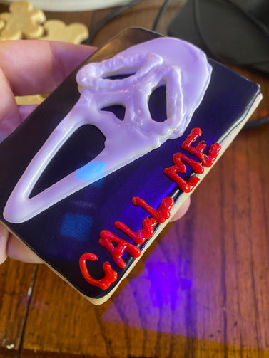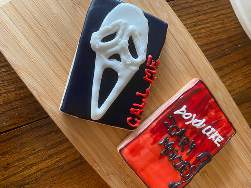 10 minis and 2 regular cookies wrapped in red and ready for the upcoming SCREAM6 coming to theaters March 10th.
