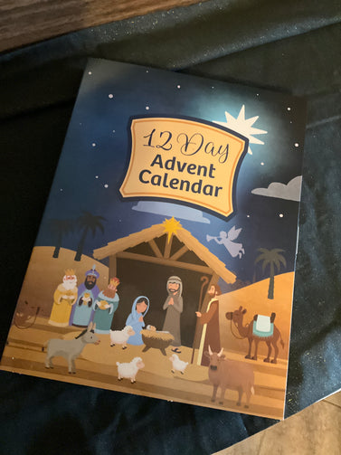 12 days of minis that depict a nativity scene, including Mary, Joseph and baby Jesus